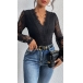 Fashion V-neck Long Sleeve Lace Bodysuit