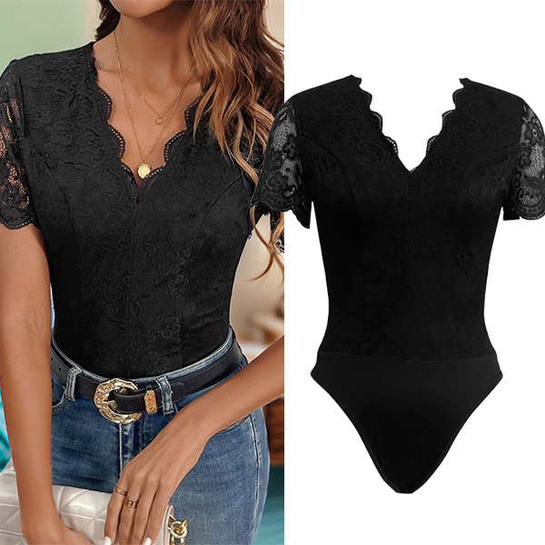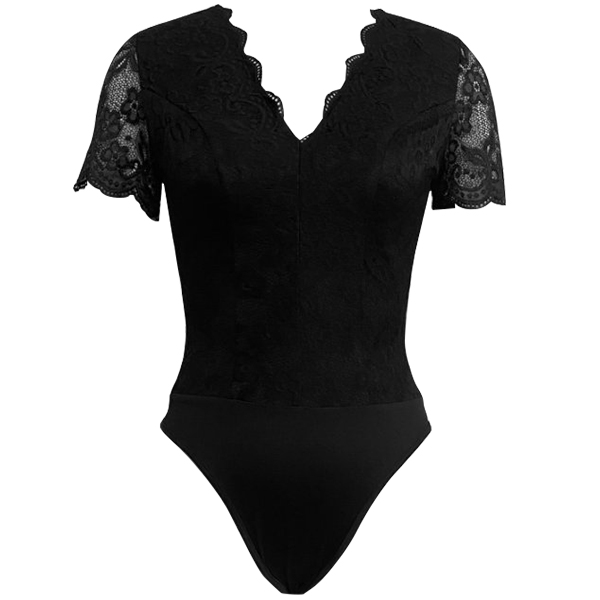 Fashion V-neck Short Sleeve Lace Bodysuit