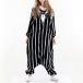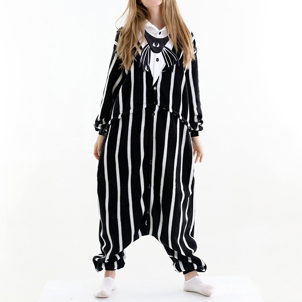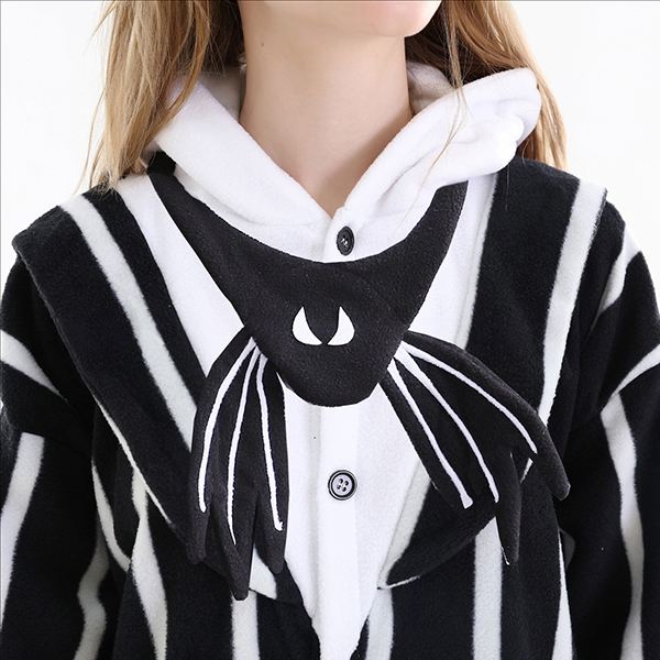 Fashion Vertical Striped Skull Hooded Plush Pajamas Jumpsuit