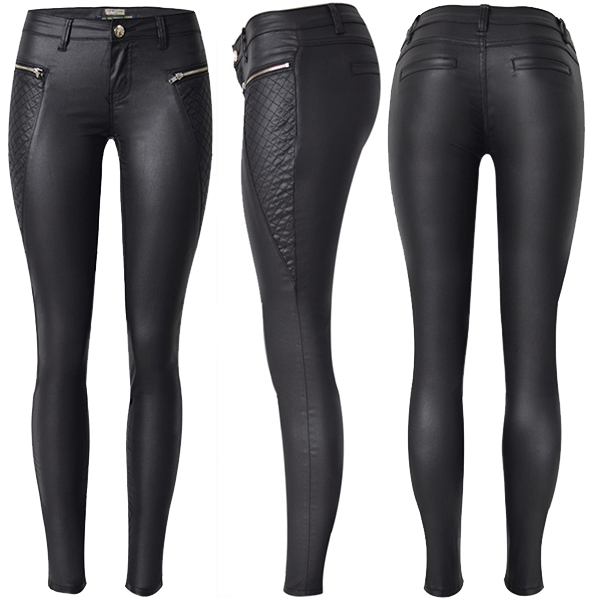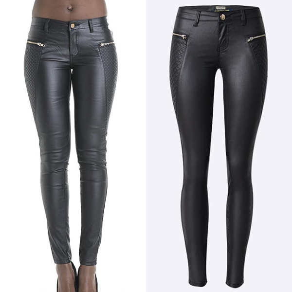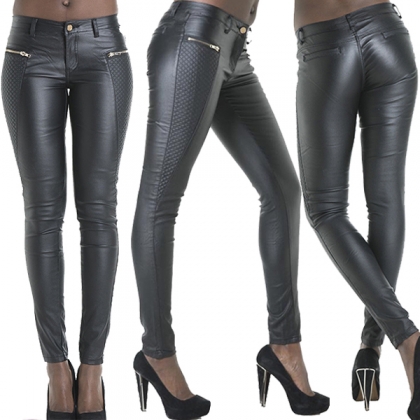 Fashion Zipper Low Waist Artificial Leather PU Fitted Pants