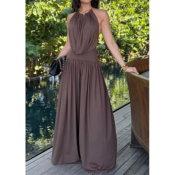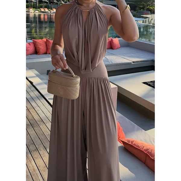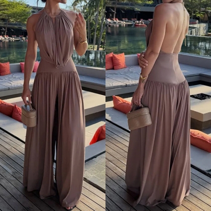 Halter Jumpsuit and Wide Leg Pants Set Casual Two Piece Outfit