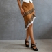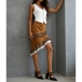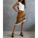 Fashion High-rise Leopard Printed Lace Spliced Faux Suede Skirt