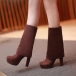 Long Stretchy Frosted Over the Knee High Heel Platform Boots