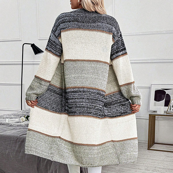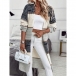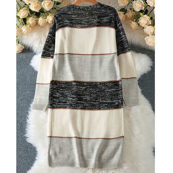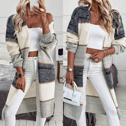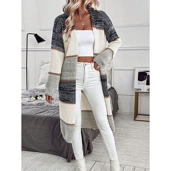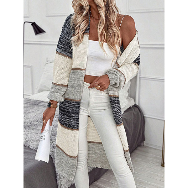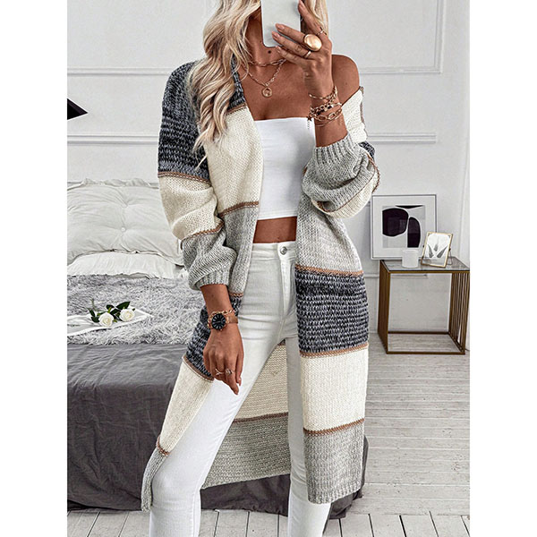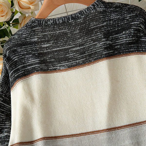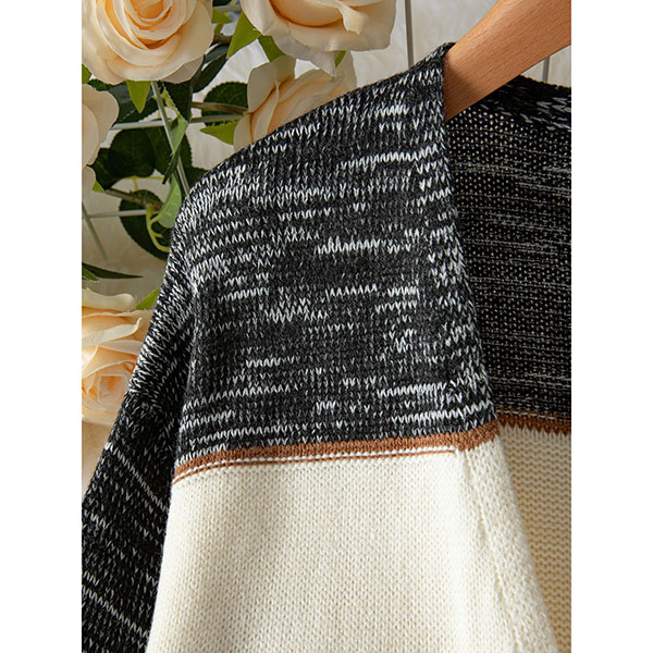 Fashion Contrast Color V-neck Long Sleeve Cardigan