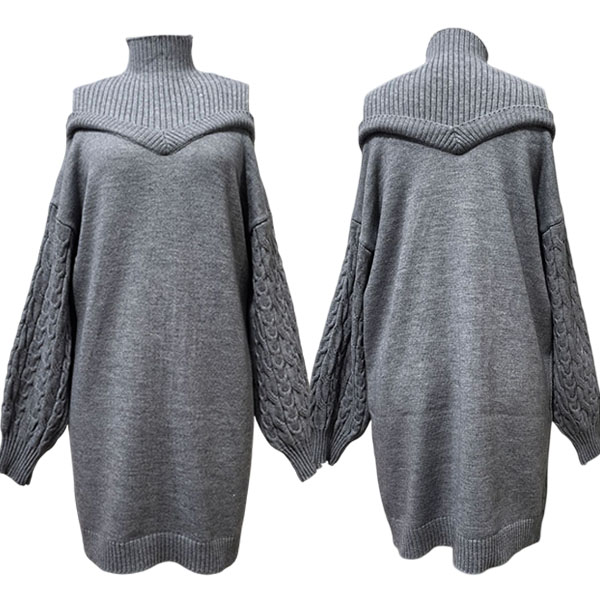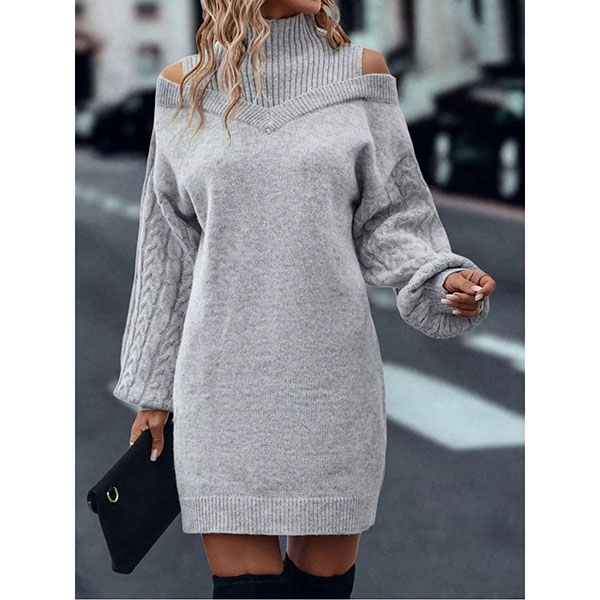 This Sweater Dress is a trendy and stylish piece that combines sophistication with a touch of edginess for a chic and modern look. The mock neck offers a sleek and elegant neckline that adds a touch of refinement to the dress, creating a polished and sophisticated aesthetic. The open-shoulder design adds a stylish and contemporary element to the sweater dress, allowing you to show a hint of skin while still staying cozy and warm. The cable knit detailing along the long sleeve adds texture and visual interest to the dress, creating a unique and eye-catching look that sets it apart from traditional sweater dresses. Pair it with over-the-knee boots for a trendy and chic look, or style it with tights and ankle boots for a more casual yet stylish ensemble.
