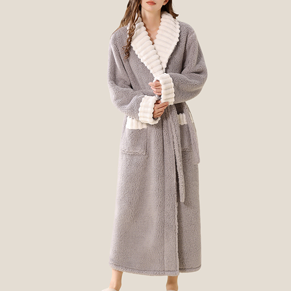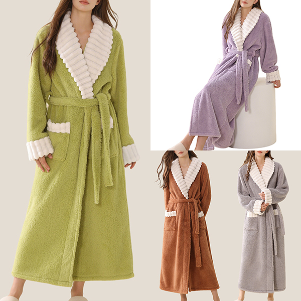 Plush Thick Coral Fleece Bathrobe in Long Style