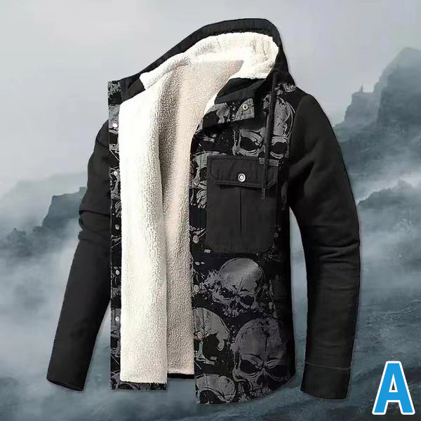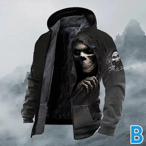 Punk Fashion Skull Plush Lined Drawstring Hooded Jacket for Men