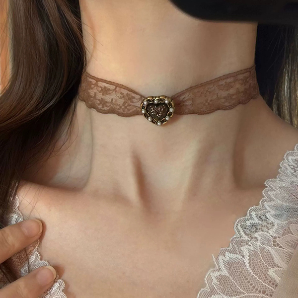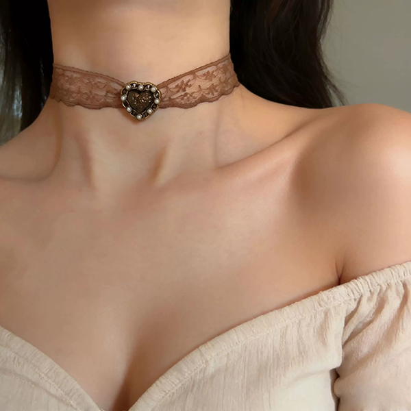 Romantic Heart-shape Pendant Lace Choker