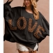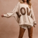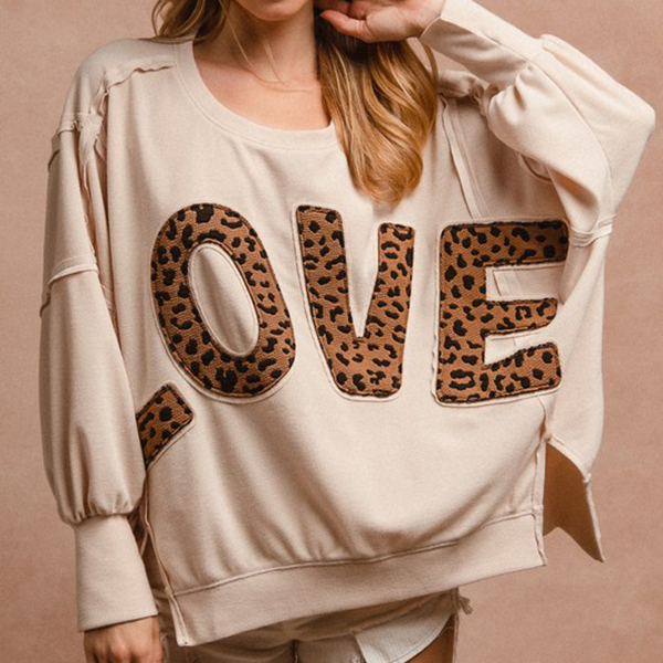 This charming sweatshirt features playful leopard print with romantic letter-LOVE detailing and relaxed batwing sleeves for contemporary casual sophistication. Perfect for casual contemporary occasions, romantic styling, or comfortable playful wear.