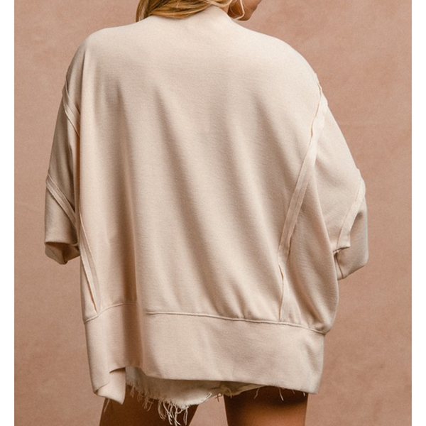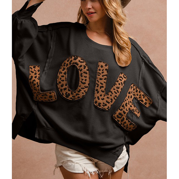 Romantic Leopard Printed Letter-LOVE Crew Neck Batwing Sleeve Side Slit Sweatshirt