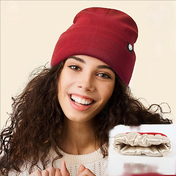 Love the warmth of a cozy beanie but hate what it does to your hair? The frizz, the static, the dreaded "hat hair" after you've spent time on your style... we get it. That's why the internet is obsessed with the solution: our Satin-Lined Knitted Beanie, it lets you stay warm without sacrificing your hair's health and style.