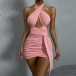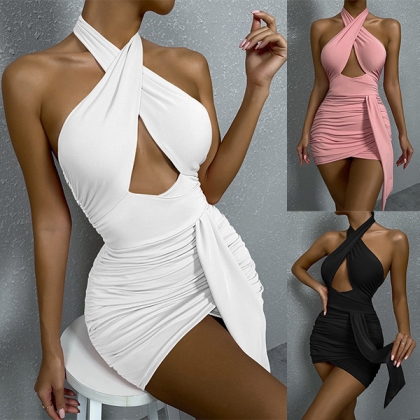 Sexy Backless Slit Hem Hollow Out Crossover Halter Dress