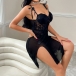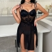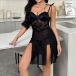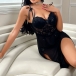 Sexy Embroidered 3D Floral Decoration Sweetheart Neckline Lace Spliced Gauze Nightwear Dress