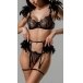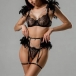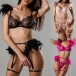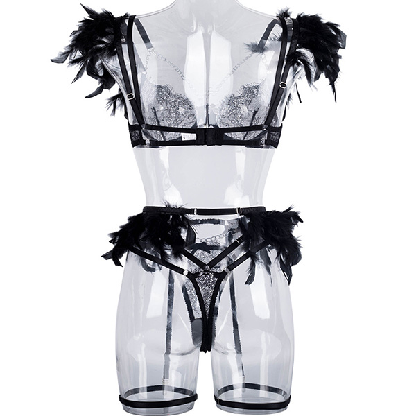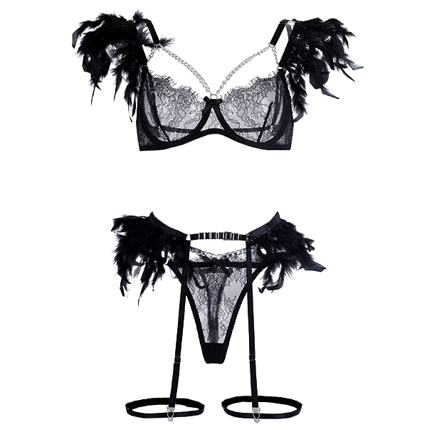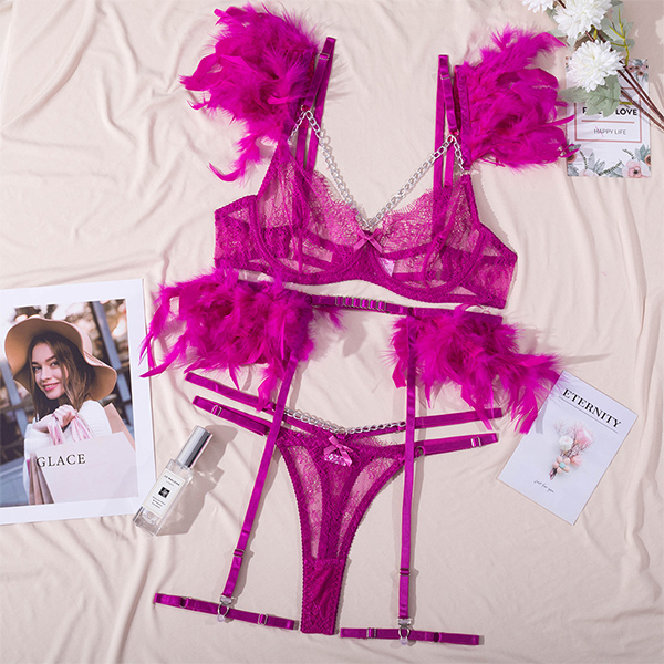 Sexy Feather Spliced Lace Chain Three-piece Lingerie Set