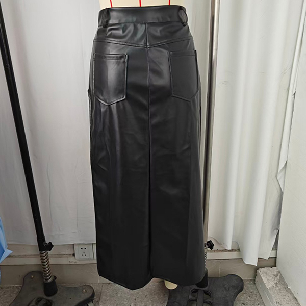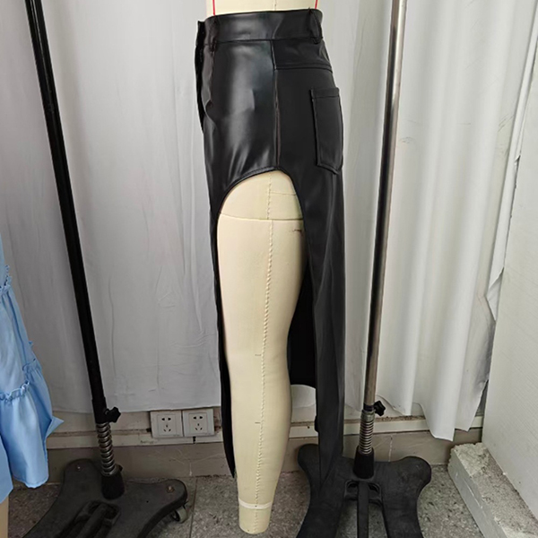 Sexy High-rise Side Slit Irregular Artificial Leather PU Skirt