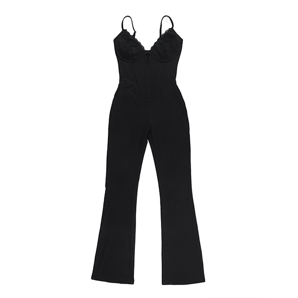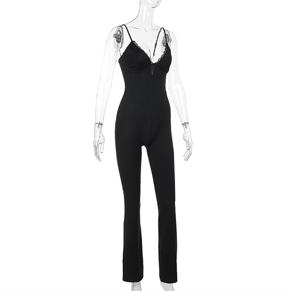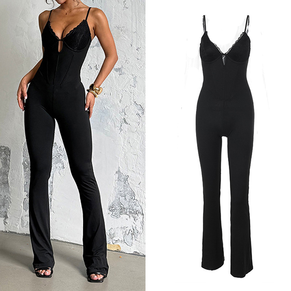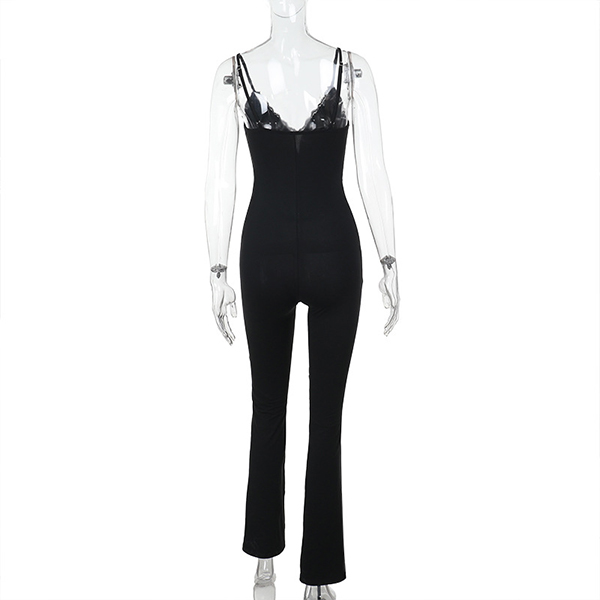 Sexy Lace Spliced V-neck Slim-fit Jumpsuit