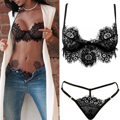 In every woman's inner heart,they are eager to flaunt off their darling,bold and flirty side. So why not let this bra set help you? It consists of a lace bra and a T-back,this underwear set will let you know what sexy and femininity is. Don’t hesitate,add one set to your wardrobe!