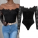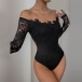 Sexy Off-the-shoulder Floral Jacquard Lace Bodysuit