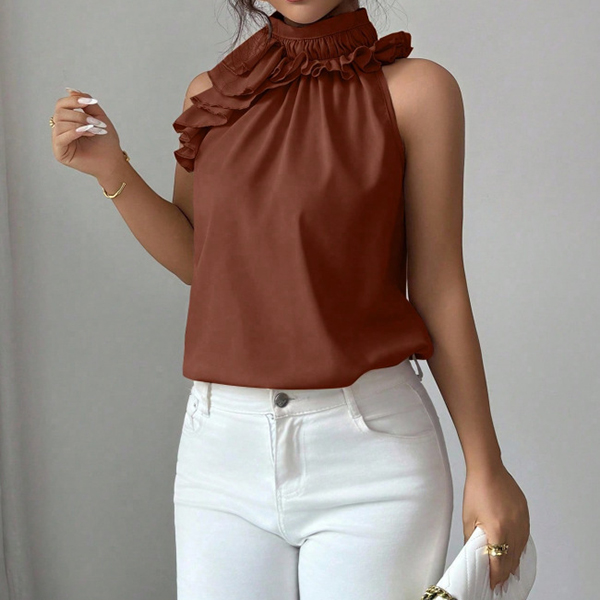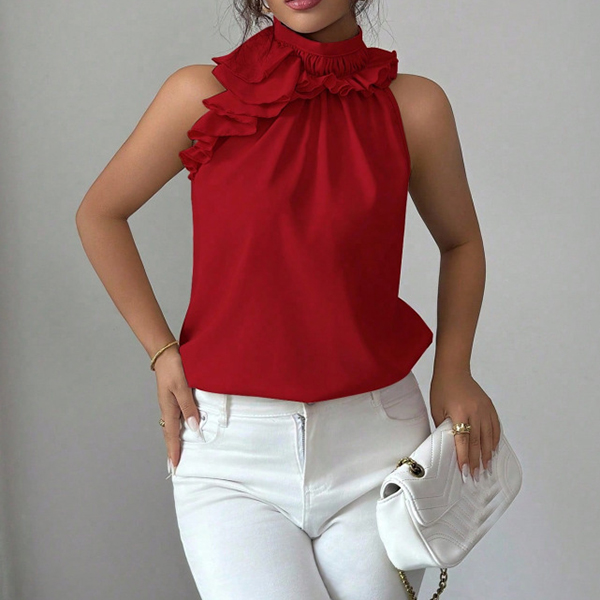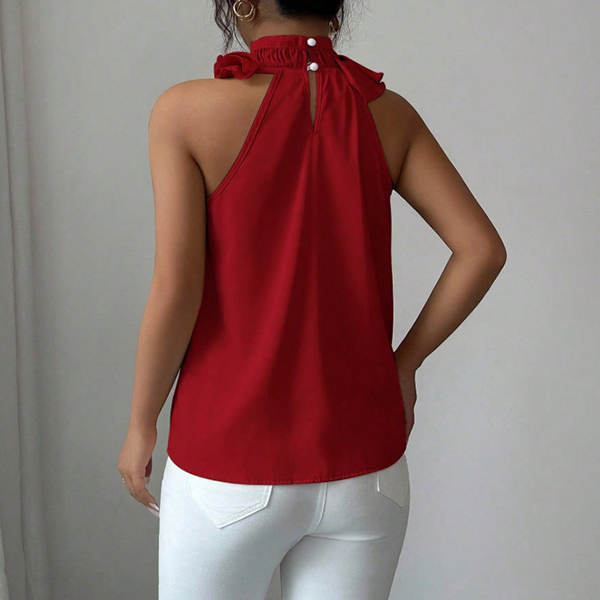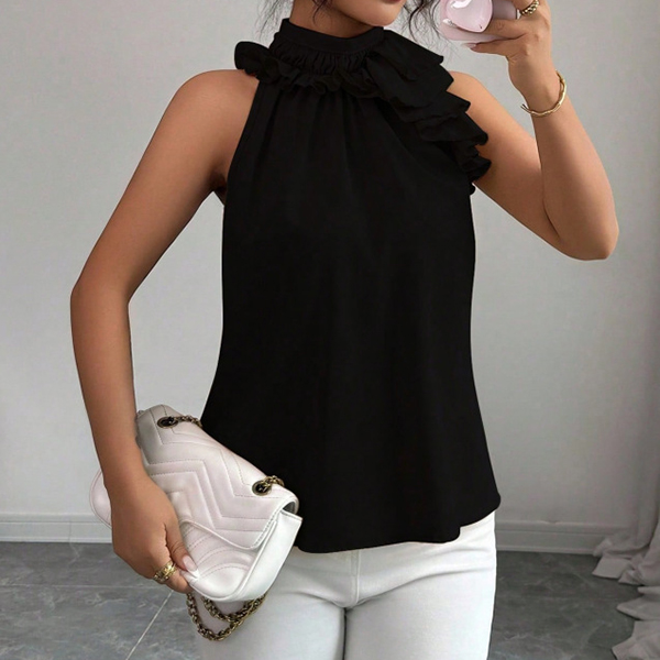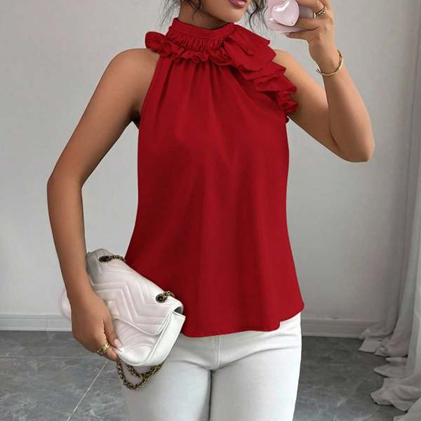 Sexy Ruched Mock Neck Sleeveless Shirt