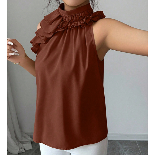 Look at this shirt~The refined mock neckline brings modern elegance and structured sophistication, creating a polished frame for your face and neck. Sleeveless styling keeps things clean and versatile, perfect for layering or wearing solo across seasons. Multi-colors avabile.