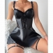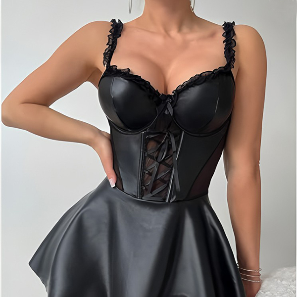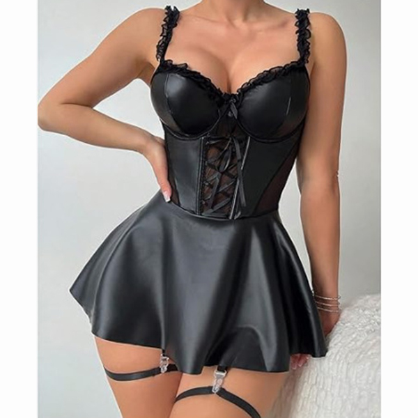 Sexy Ruffle Sweetheart Neckline Front Lace-up Artificial Leather PU Nightwear Dress