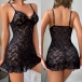 Sexy Ruffle V-neck Floral Jacquard Lace Nightwear Dress