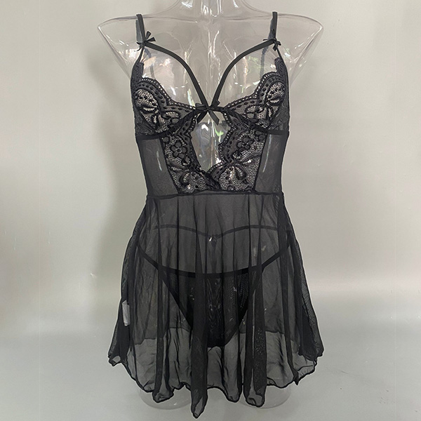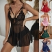 Sexy See-through Lace Spliced Gauze Cut Out Nightwear Dress