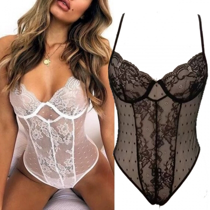 Sexy Semi-through V-neck Backless Lace Lingerie Bodysuit
