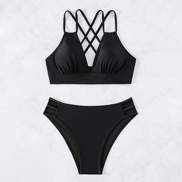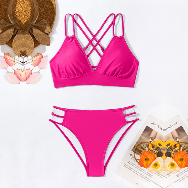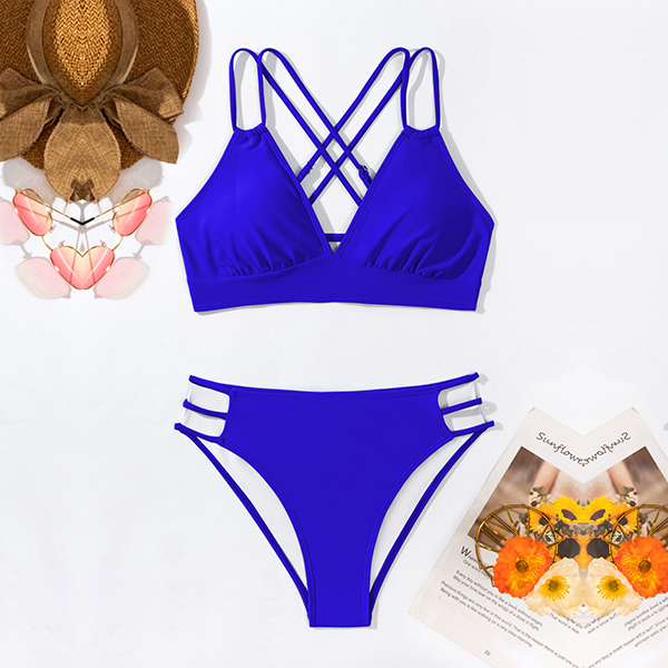 Sexy Solid Color Cutout Two-piece Bikini Set