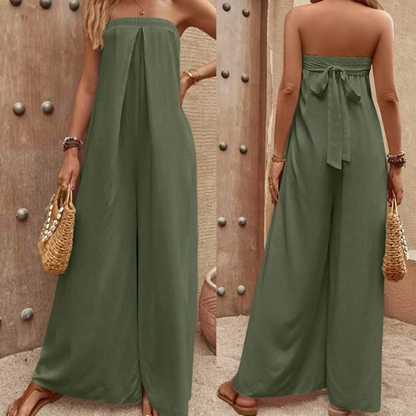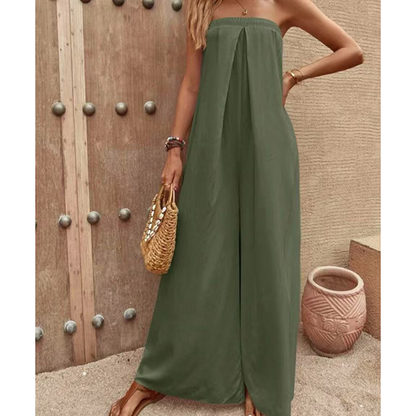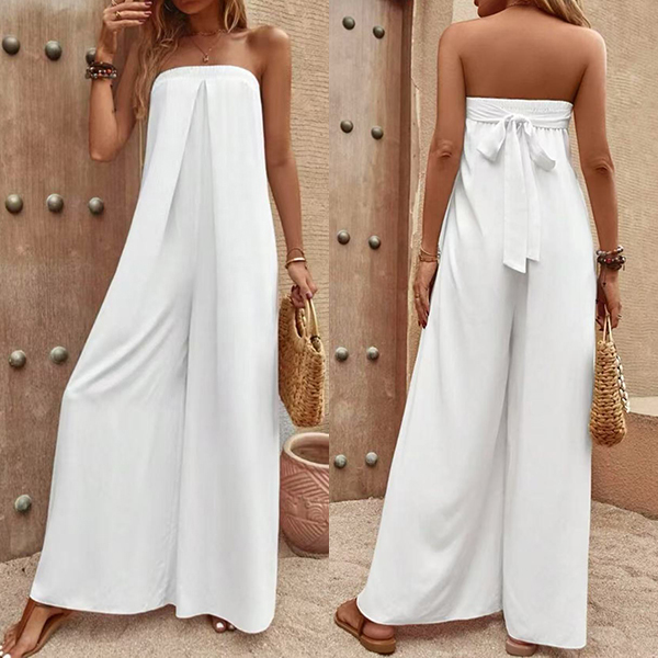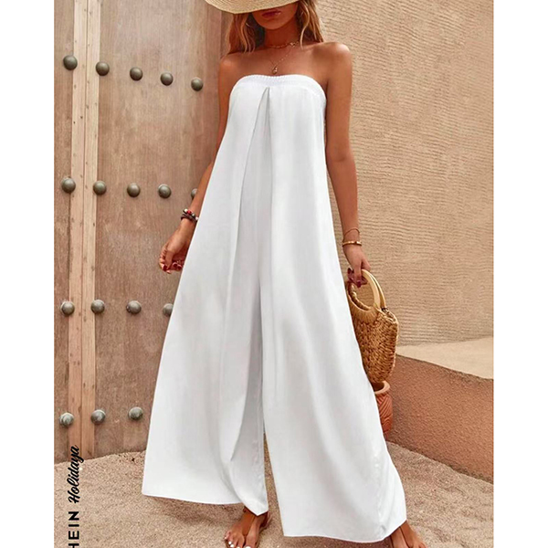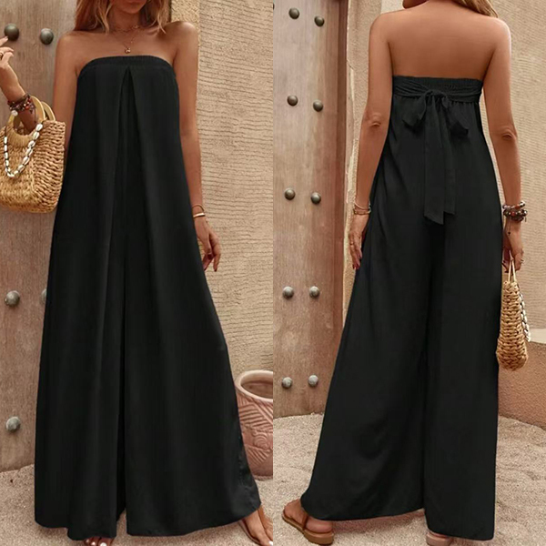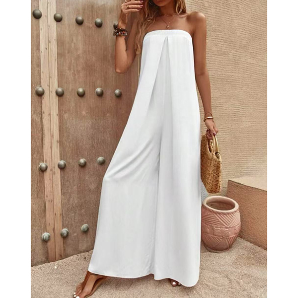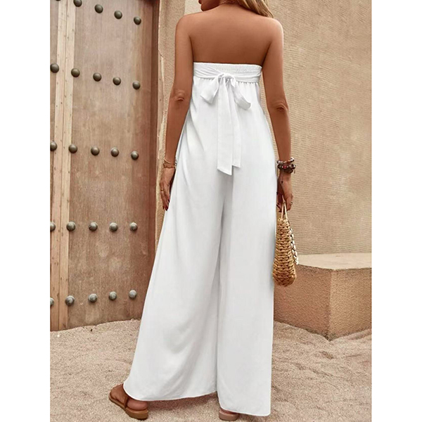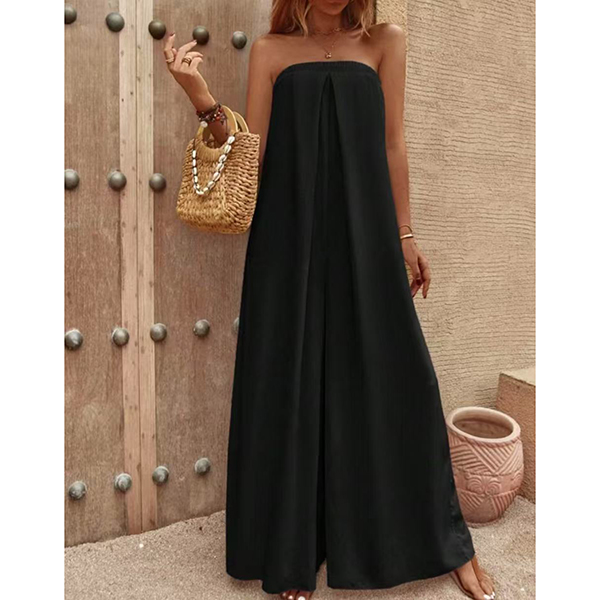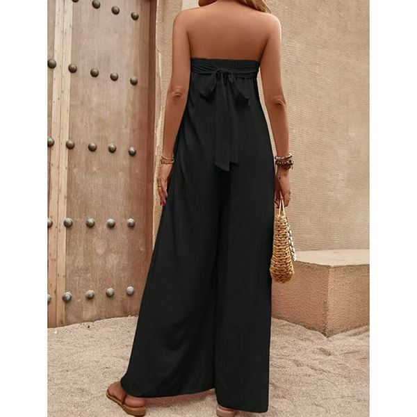 Sexy Strapless High Waist Solid Color Chiffon Jumpsuit