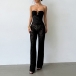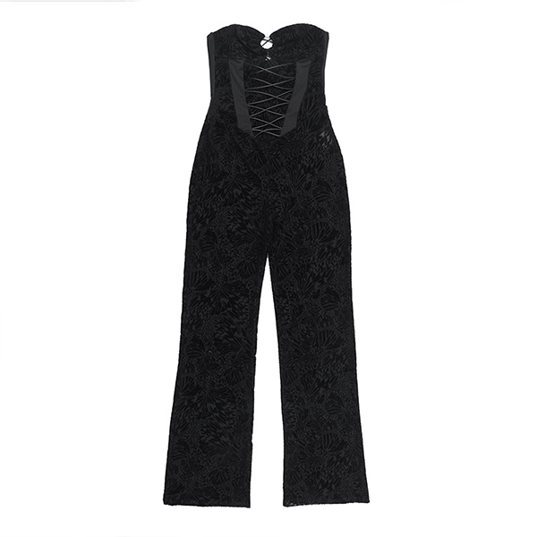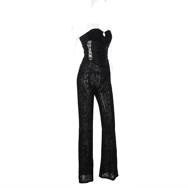 Sexy Strapless O-ring Front Straight-cut Lace Jumpsuit