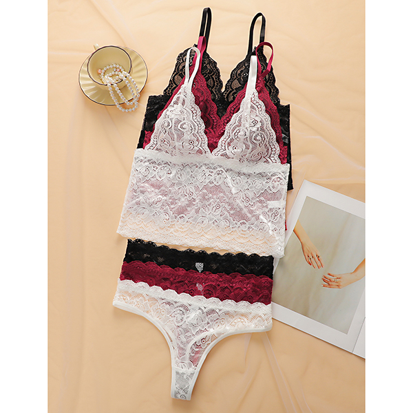Sexy V-neck Two-piece Lace Lingerie Set