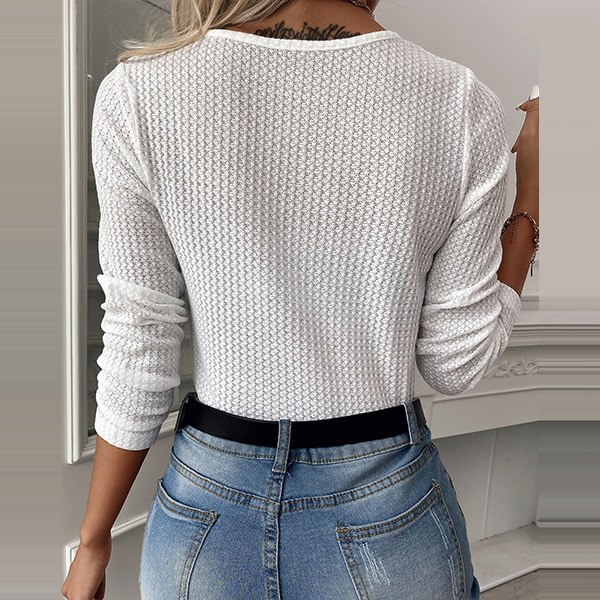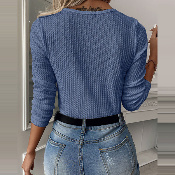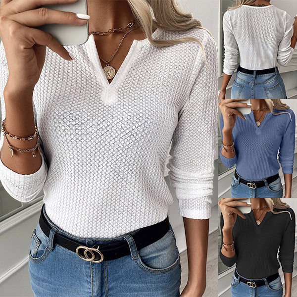 Combines of cozy and stylish vibes,this t-shirt is yearning for a place in your wardrobe. Crafted in a solid color,with long sleeve and v-neck design,this piece can keep the comfy as well as offer you many matching styles.