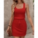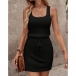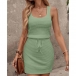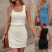 When the warm weather comes,this simple style tank dress can be your wise choice. Solid color tone design makes it look simple yet generous,while the drawstring waist design can better showcase your figure and waistline. Finished with sleeveless and round neck design,this tank dress knows how to give you a cozy yet stylish style.