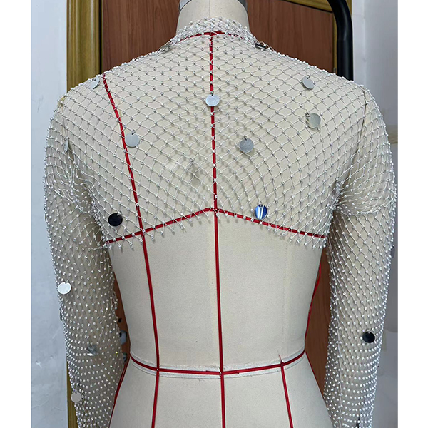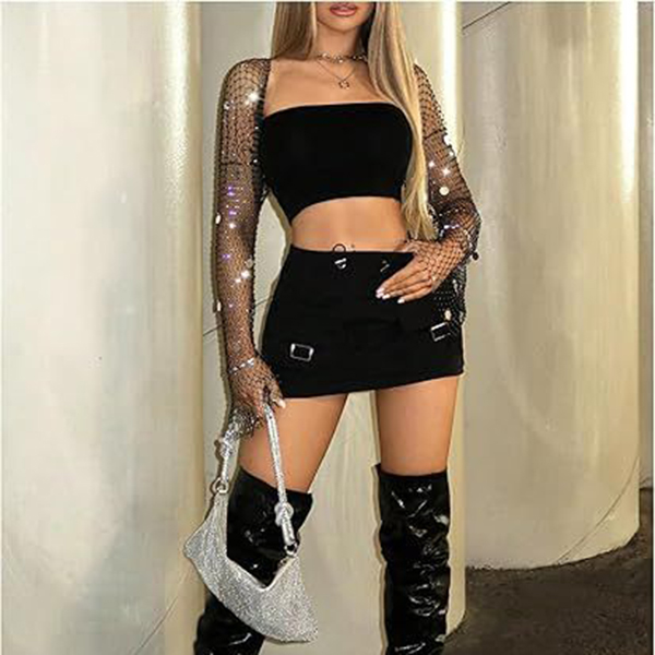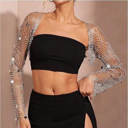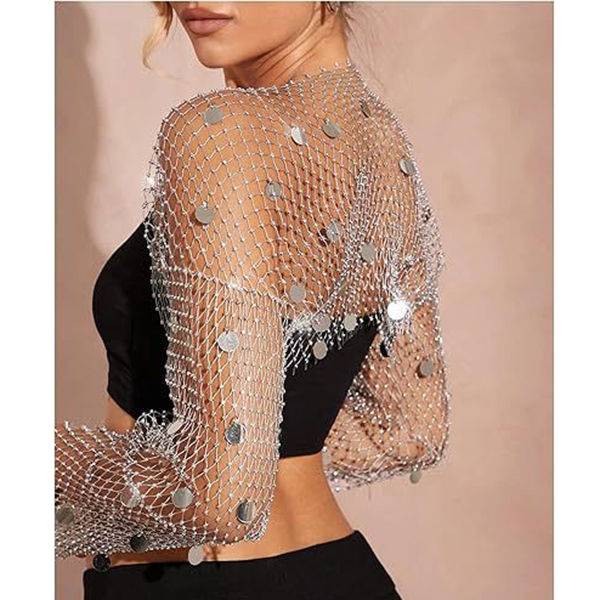 Sparkly Fishnet Cardigan Top with Sequins and Rhinestones