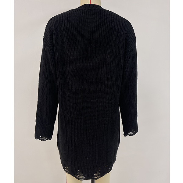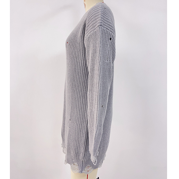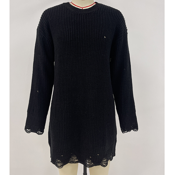Street Fashion Crew Neck Long Sleeve Frayed Hemline Knitted Sweater