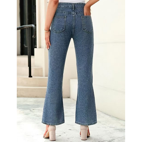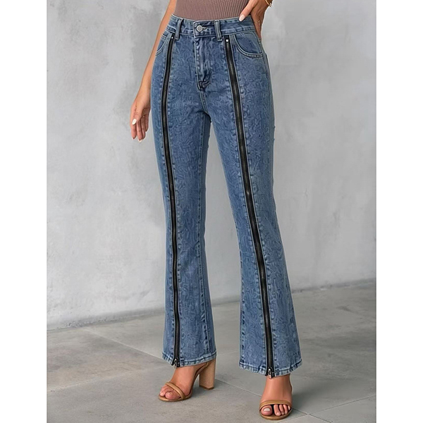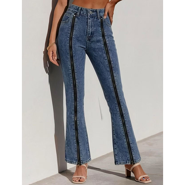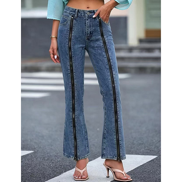 Street-fashion Front Zipper High-rise Old-washed Denim Jeans