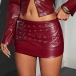 Street Fashion Low-rise Square Buckle Artificial Leather PU Mini Skirt
