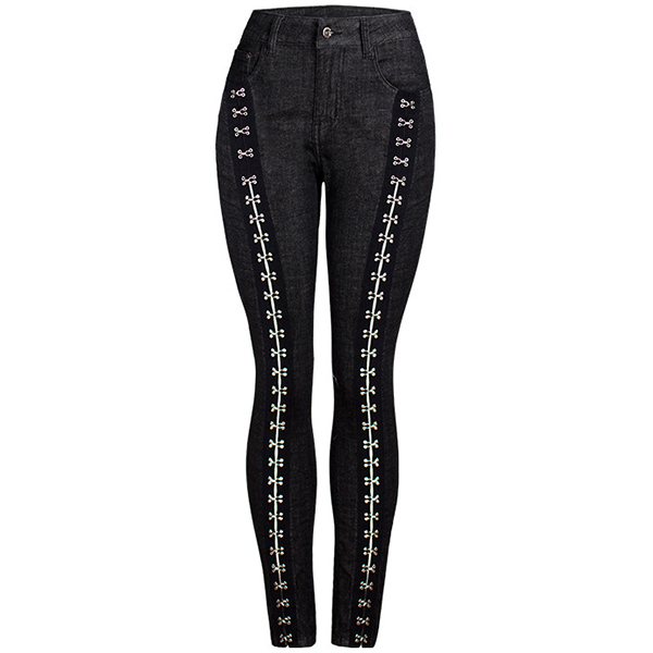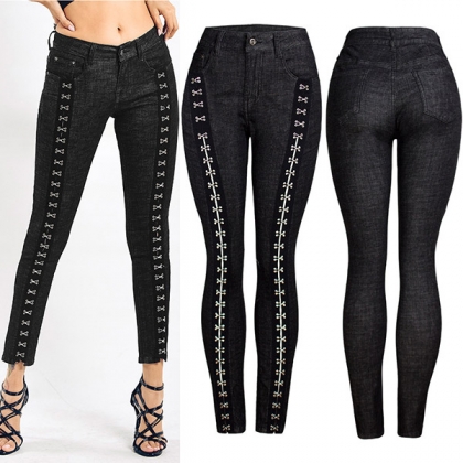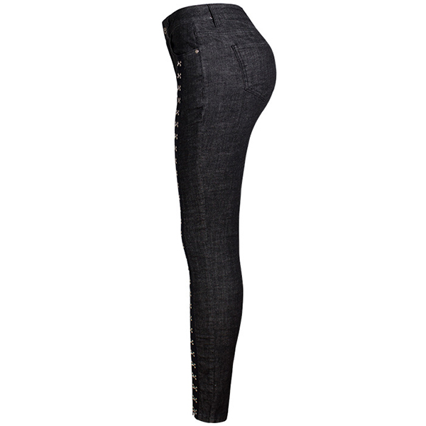 Street Fashion Rivet Button Black Stretch Skinny Denim Jeans