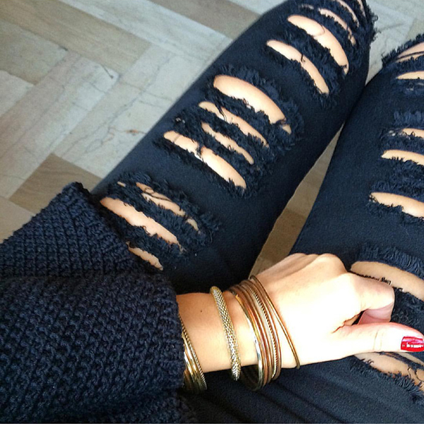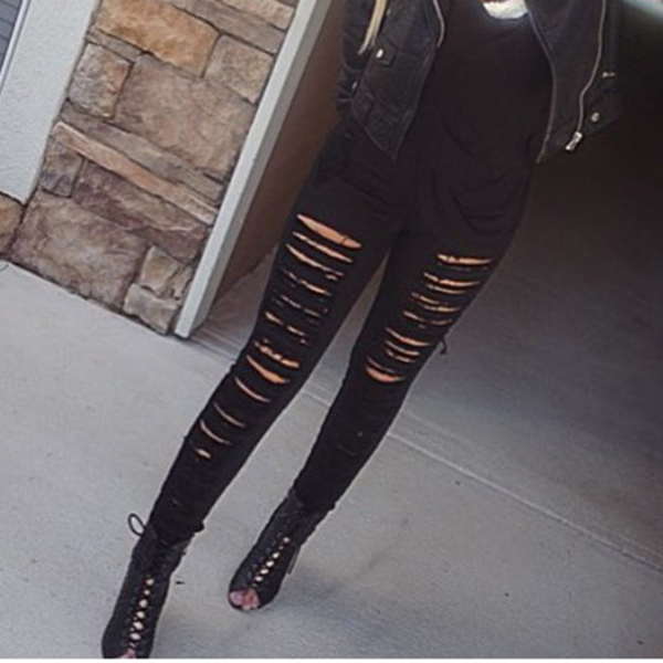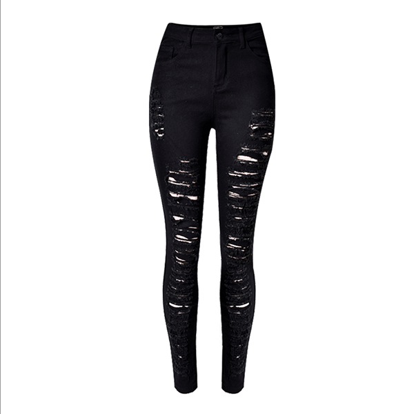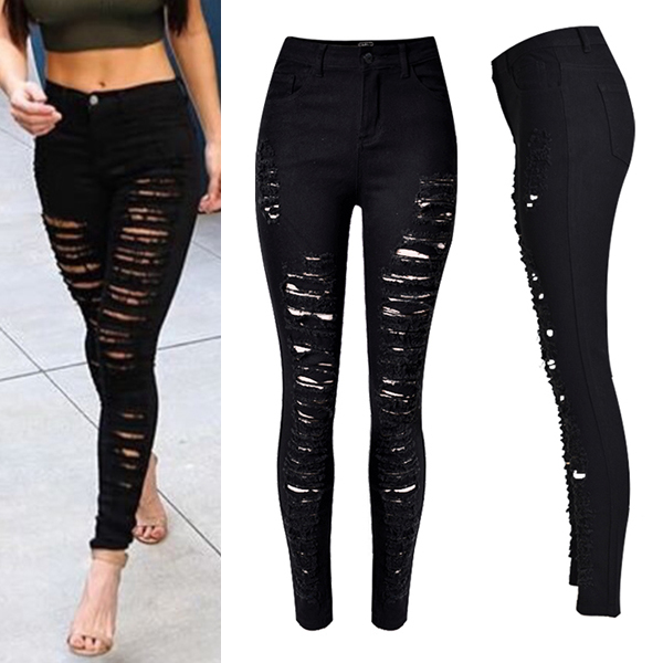 Stretch High-Waisted Jeans with Ripped Skinny Slim-Fit Design