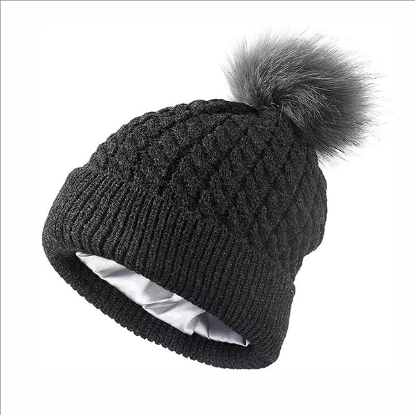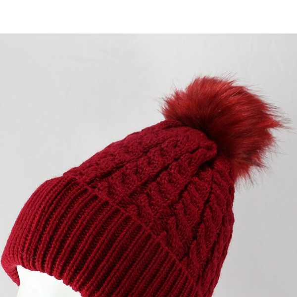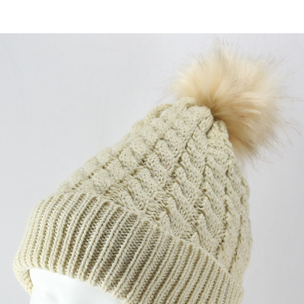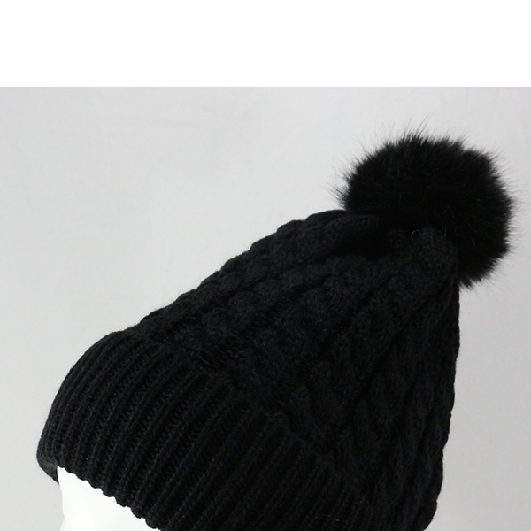 Thermal Winter Beanie Cable Knitting with Detachable Pom-pom
