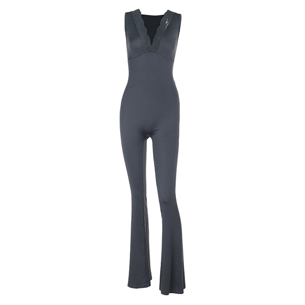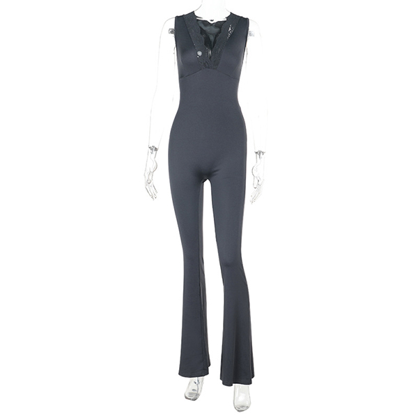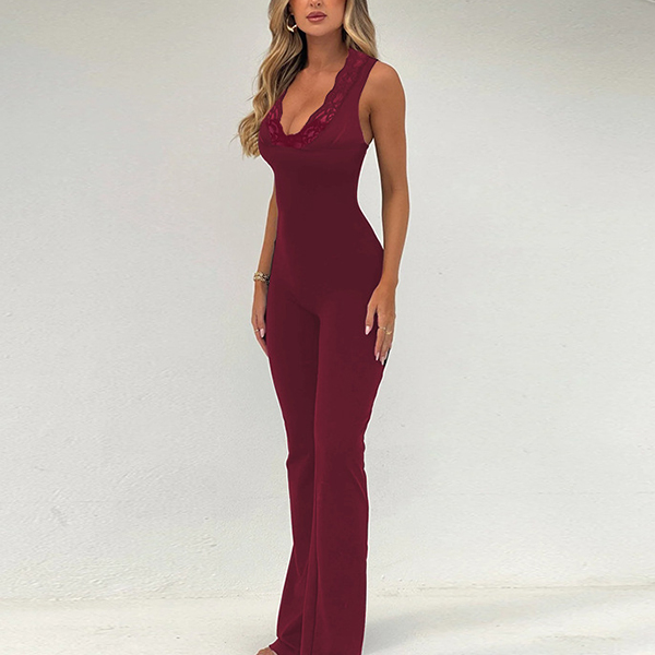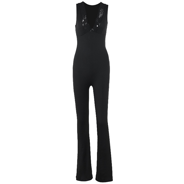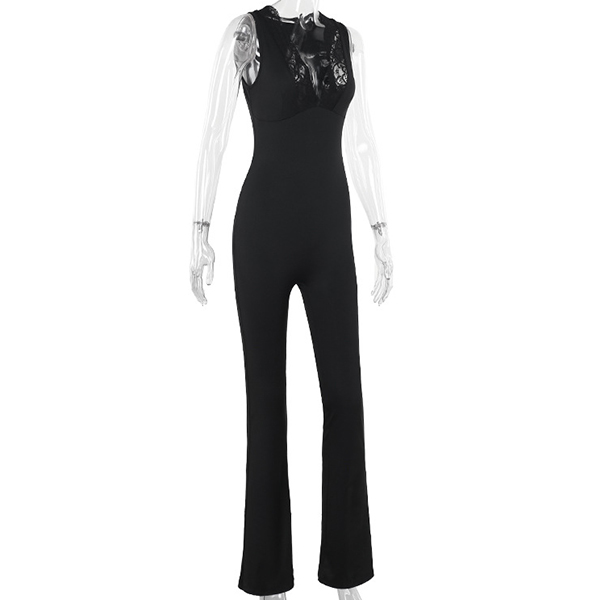 Elevate your style with this fashion jumpsuit! This jumpsuit features delicate lace splicing and a flattering V-neckline, creating a sophisticated and feminine look. The sleeveless design and straight-cut silhouette offer a modern and chic style. Ideal for daily wear.