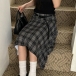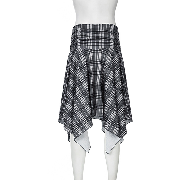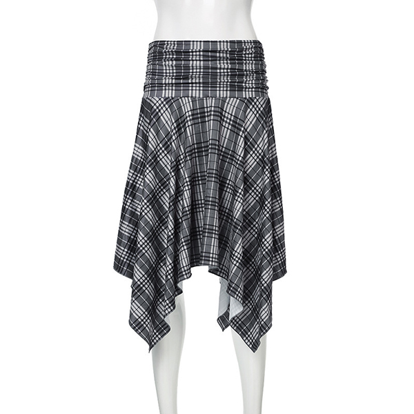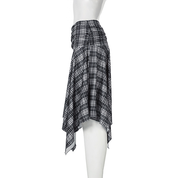 Vintage Draped High-rise Irregular Hemline Plaid Skirt