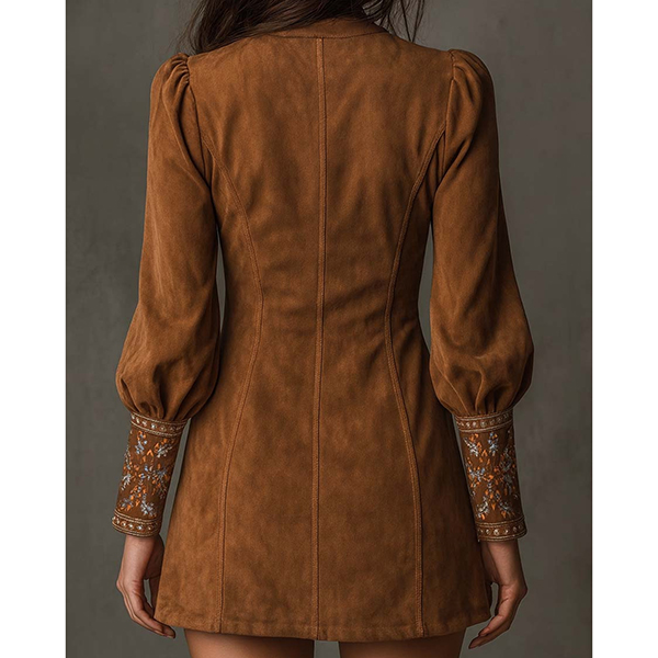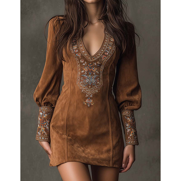This dress features romantic floral printed with flattering V-neck styling and luxurious artificial suede construction for contemporary vintage elegance. accessories for sophisticated romantic appeal. Perfect for vintage occasions, romantic styling, or sophisticated heritage coordination.