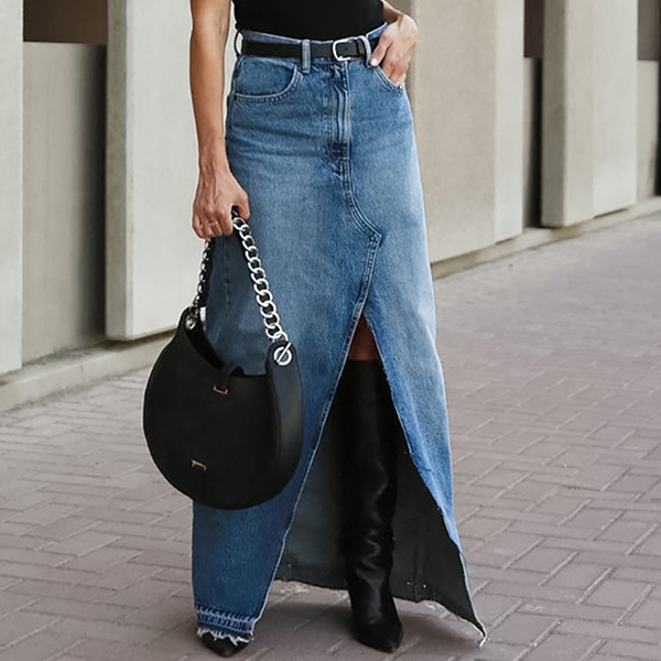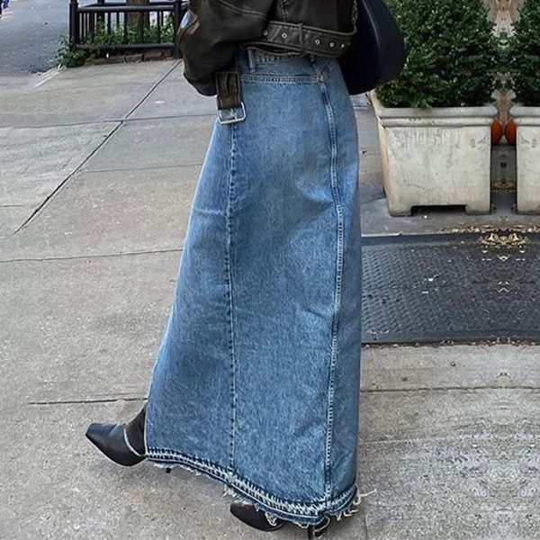 This retro-inspired skirt is perfect for adding a touch of vintage charm to your outfit. The old-washed denim fabric gives the skirt a worn-in and lived-in look, and the front slit detail adds a modern twist to the classic denim skirt, allowing for ease of movement and a touch of edginess. Pair this denim skirt with a graphic tee and sneakers for a casual and laid-back vibe.