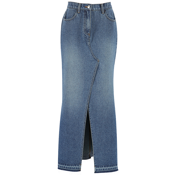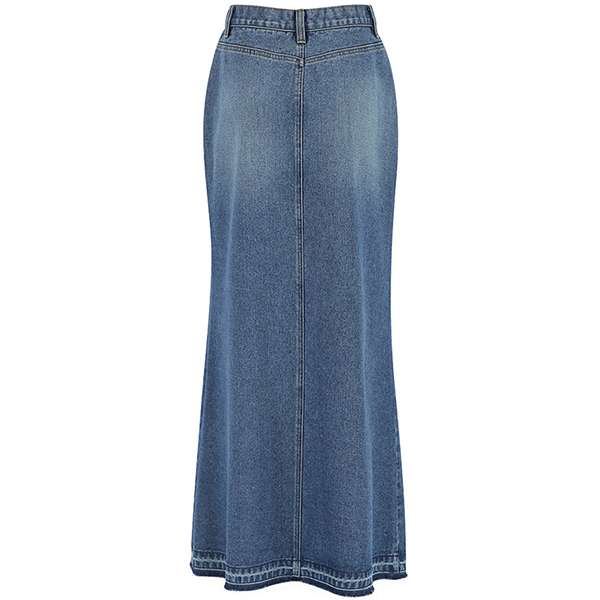Vintage Front Slit Old-washed Denim Skirt