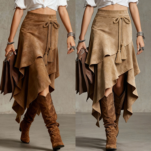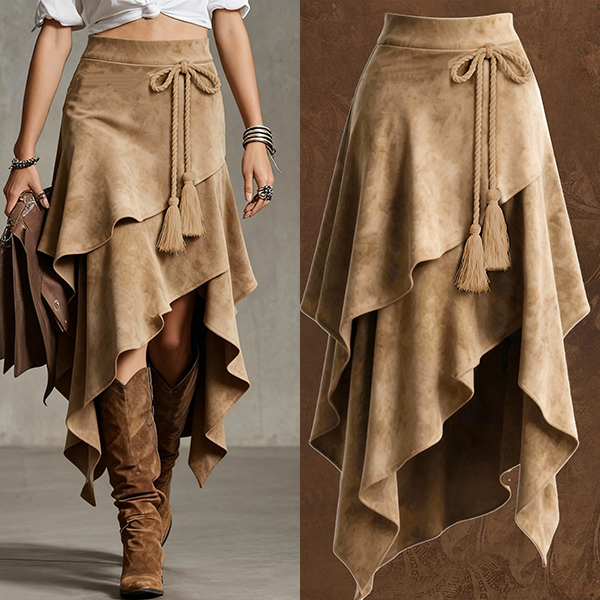 This charming skirt features nostalgic high-rise styling with romantic bowknot detailing and playful ruffle irregular hemline for vintage-inspired feminine sophistication. Pair with vintage blouses and retro accessories for authentic period appeal.