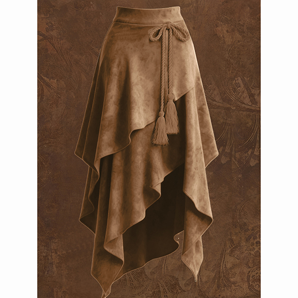 Vintage High-rise Bowknot Ruffle Irregular Hemline Skirt