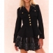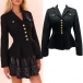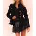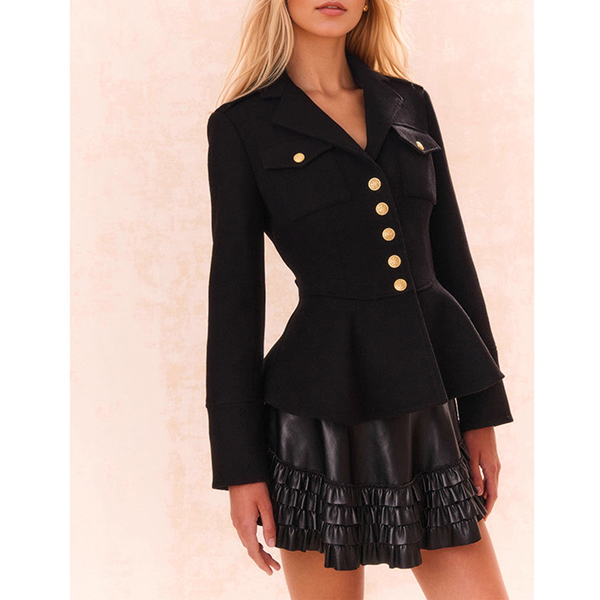 Vintage Notch Lapel Long Sleeve Front Button Ruffle Hemline Jacket