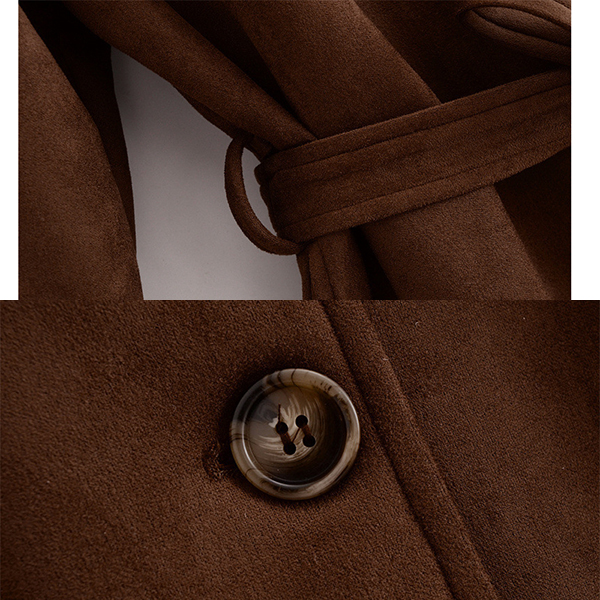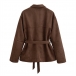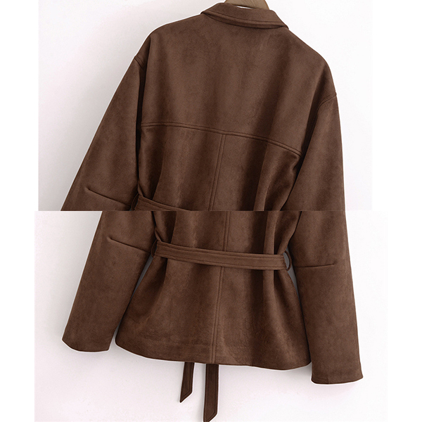 Vintage Stand Collar Long Sleeve Self-tie Artificial Suede Jacket